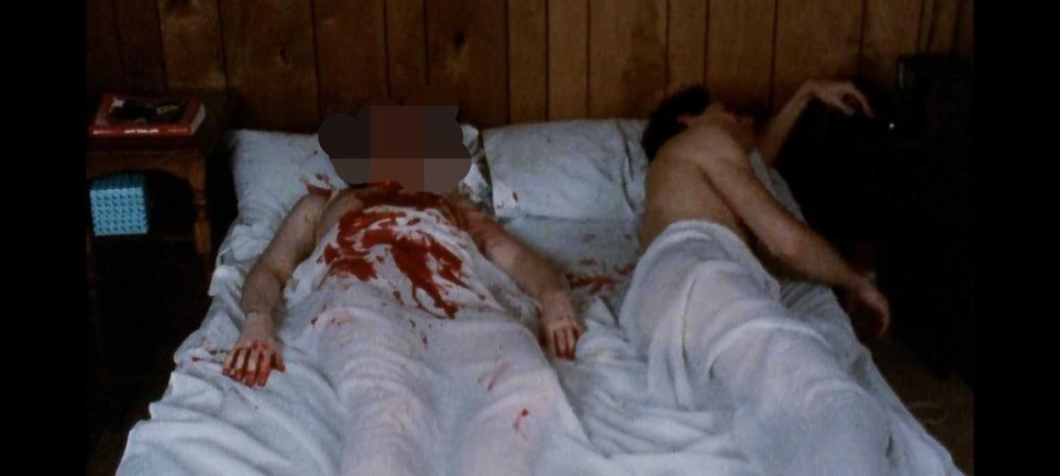 影片让人想到Mayhem乐队在作品《Necrolust》里的这几句:“Your stinking corpse,I desirenothing can take me higher,****ing you till your bones break,Another one has to die…” “你腐烂的尸骸,我渴求,再无事物能让我更亢奋,干到你骨裂形销,又一条性命必须消亡…”感觉用来形容凶手的状态再合适不过,他对女性有极深的爱欲,而且对女shi的情感更甚,导演在剧情中留了伏笔,那就是凶手之外,其实还有一个凶手,但是这个凶手是谁,到最后也没有交代,只是在结局给了一个脸部特写,感觉导演是想塞反转,但是最后玩脱了。 驱动故事中几个主角行为的其实都是情欲,只不过这个“情欲”又各有不同,对女主而言,是真心被凶手打动,想和他在一起谈恋爱的愿望;对男主而言,是想要得到女主的身子,然后把她sha掉、一刀一刀切在她身上,享受那种快感的欲望;女主的妹妹同样有欲望,她的欲望是勾搭女主的男友,享受那种征服自己姐姐男人的快乐。 影片开始从女主(艾丽西娅)视角切入,她与男友在酒吧过着年轻人该有的肆意生活,镜头转换,来到女主打工的碟片店,店里进来了一位彬彬有礼的男子,这是凶手(富兰克林),此人上来就向女主表达了自己的爱慕之意,他表示自己从第一眼看见时就被女主的美貌所吸引,想与其有进一步的交流,但是女主顾虑再三,还是婉言拒绝,男人留下了自己的联系方式,表示如果女主有需要,可以随时打给他。 这位彬彬有礼的男子不是轻言放弃的主,次日,他自然是再次来到女主店打工的中,当时店里还来了一个粗鲁之货,不仅不买,还到处乱问,女主自然是不厌其烦,等到将其打发走了以后,男人柔言宽慰,此时通过交流,能看出女主的内心已有些许被打动之意。 影片这里插了一位警察的自述,说是有一个连环凶手,专挑女性为对象下手,已经干掉了几个人,此人凶狠至极,现在正在设法将其抓获。 这里补充一下女主最近经常遇到的一个非常让她困扰的事件:女主经常能遇到有人给他打骚扰电话,她也不知道对方为什么知道她的固话联系方式,电话那头不是野兽的咆哮,就是毫无意义的声音,或者干脆沉默不语。女主转回自己的房间就接到了电话,电话那头是友人的邀请,但是女主也自己要在碟片店打工为由拒绝,入夜,骚扰电话又一次如期而至,女主不厌其烦,甚至还在电话中听到自己男友跟自己妹妹搞在了一块,入眠不久,女主便做了噩梦,她梦见自己男友来了,将自己勒死,然后妹妹从后面出来跟男友搞在一起。 从噩梦中清醒过来的女主,决定跟富兰克林试一试,她打电话给他,表示愿意接受他的邀请,去跟他看个电影啥的,这个时候富兰克林,正躺在床上,旁边还躺着一个女的(啊,不,准确的说,应该是一具血肉模糊的女尸),大概就是下图这模样: